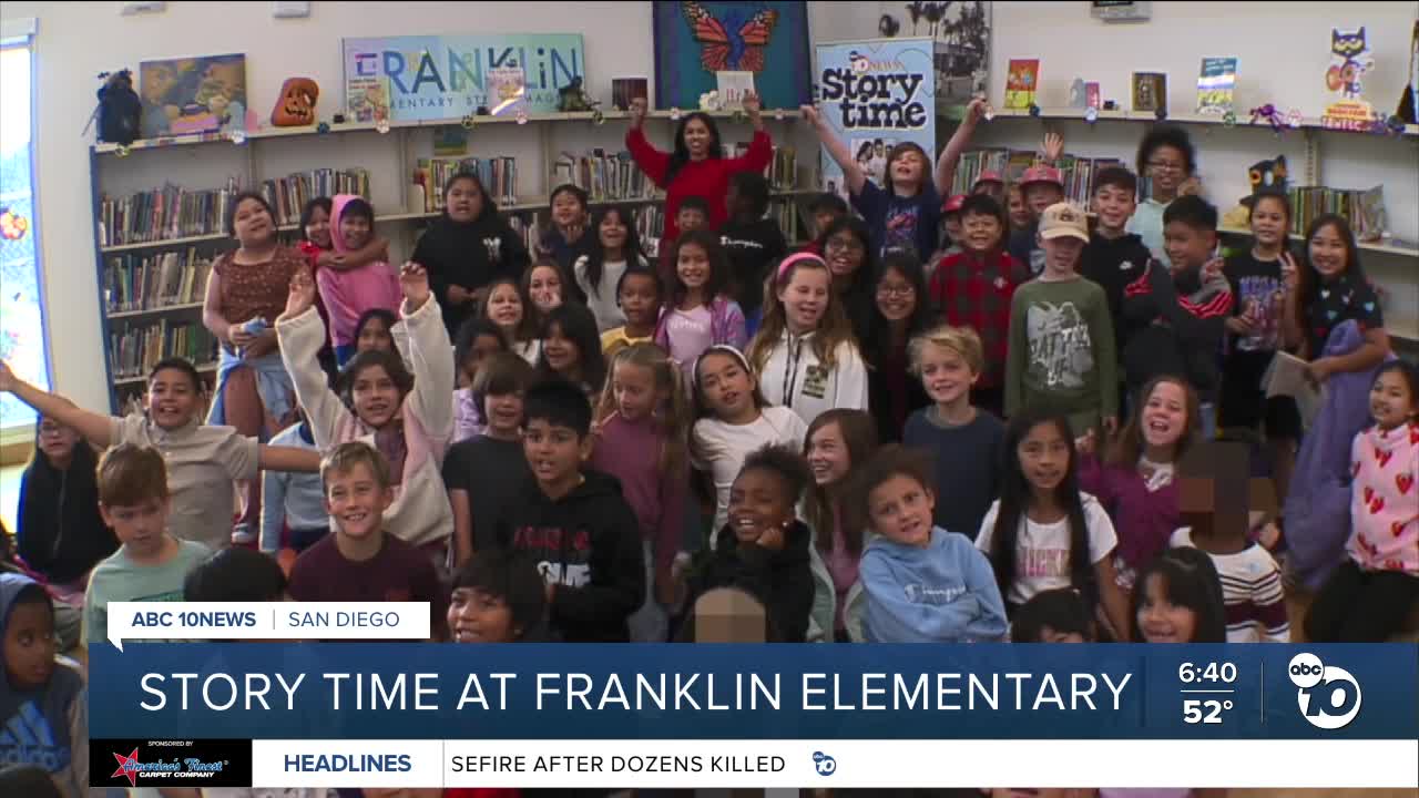 ABC 10 News Storytime made a special stop this month at Franklin Elementary School in City Heights, where anchor Melissa Messija delighted more than 70 students with readings from the hilarious "Catty & Batty" book series. The visit was made even sweeter as hundreds of free books found new homes with excited young readers.