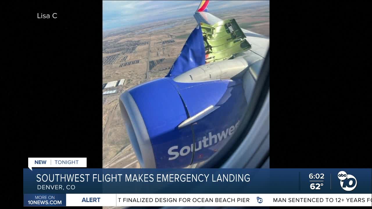 An engine cover on a Boeing 737 operated by Southwest Airlines ripped open just after taking off from Denver International Airport Sunday morning.