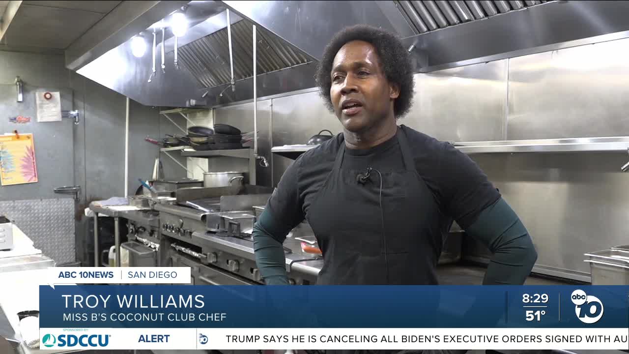 At Miss B’s Coconut Club in Mission Beach, Troy says leftovers are simply the beginning of a brand-new dish.
