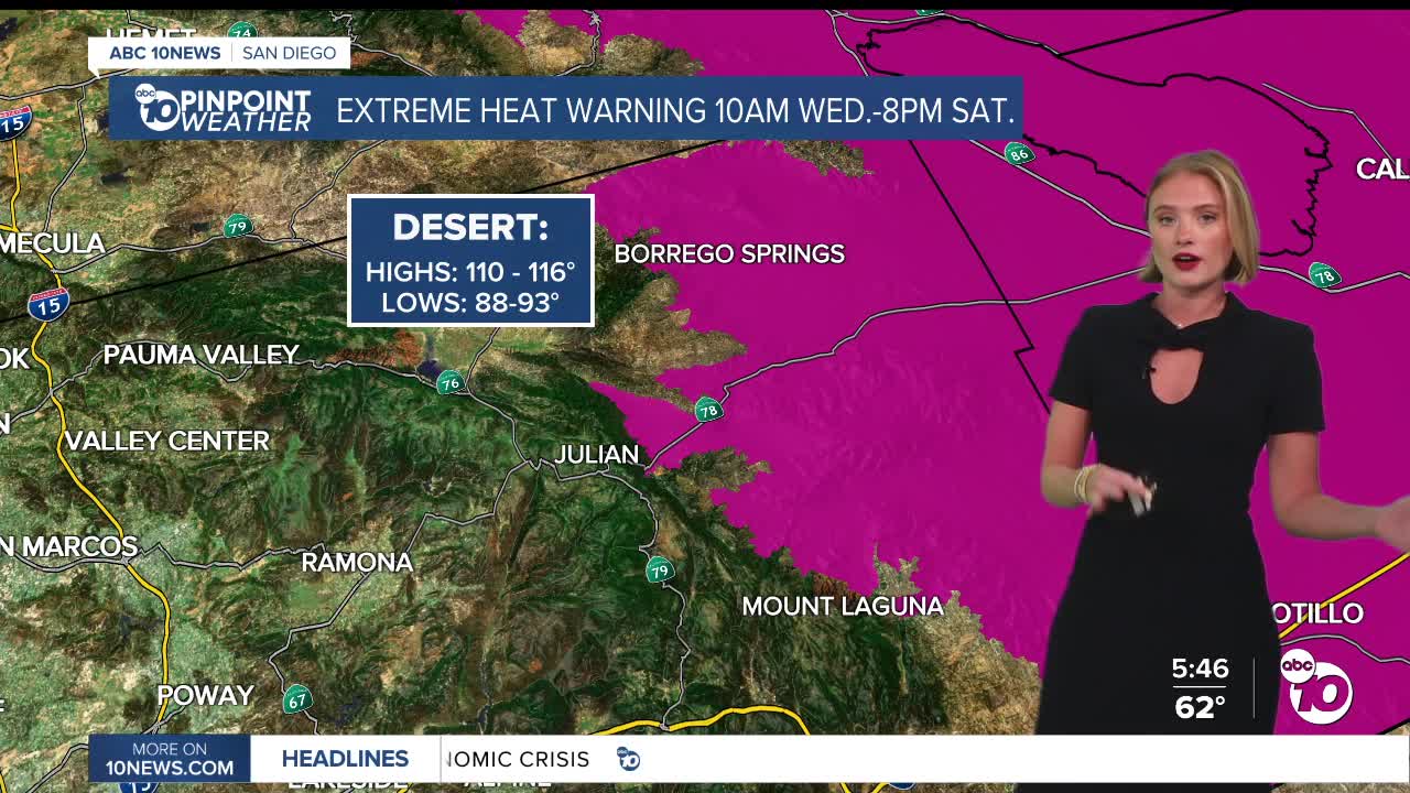 We also have an Extreme Heat Warning for the deserts that will last until 8pm Saturday, for high temperatures between 100 and 110, and morning lows in the 60s and 70s.