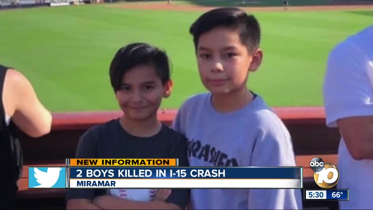 MIRAMAR, Calif. (KGTV) - Two young boys died Friday night after their mother crashed into a semi-trailer on the side of the I-15 freeway.