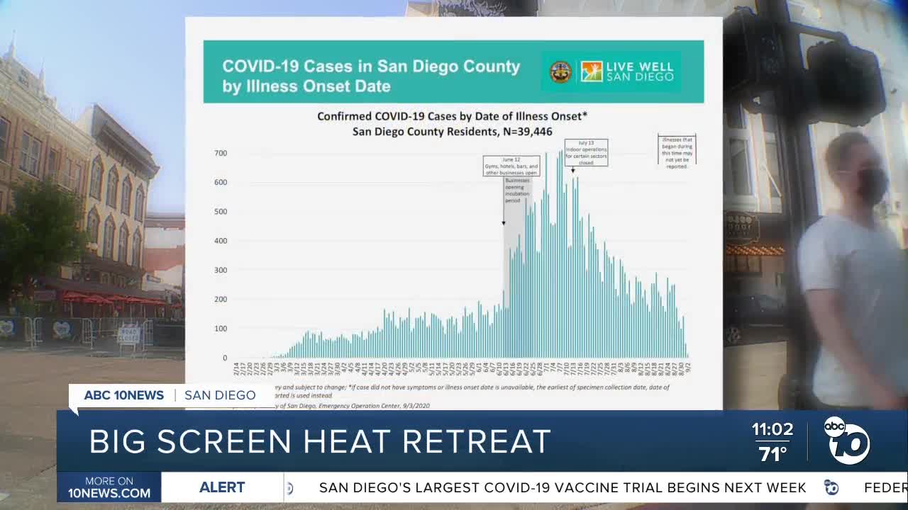 SAN DIEGO (KGTV) - As the temperature rises and more businesses, like movie theaters, are reopening San Diegans and people from neighboring counties are flocking to get a dose of normalcy.