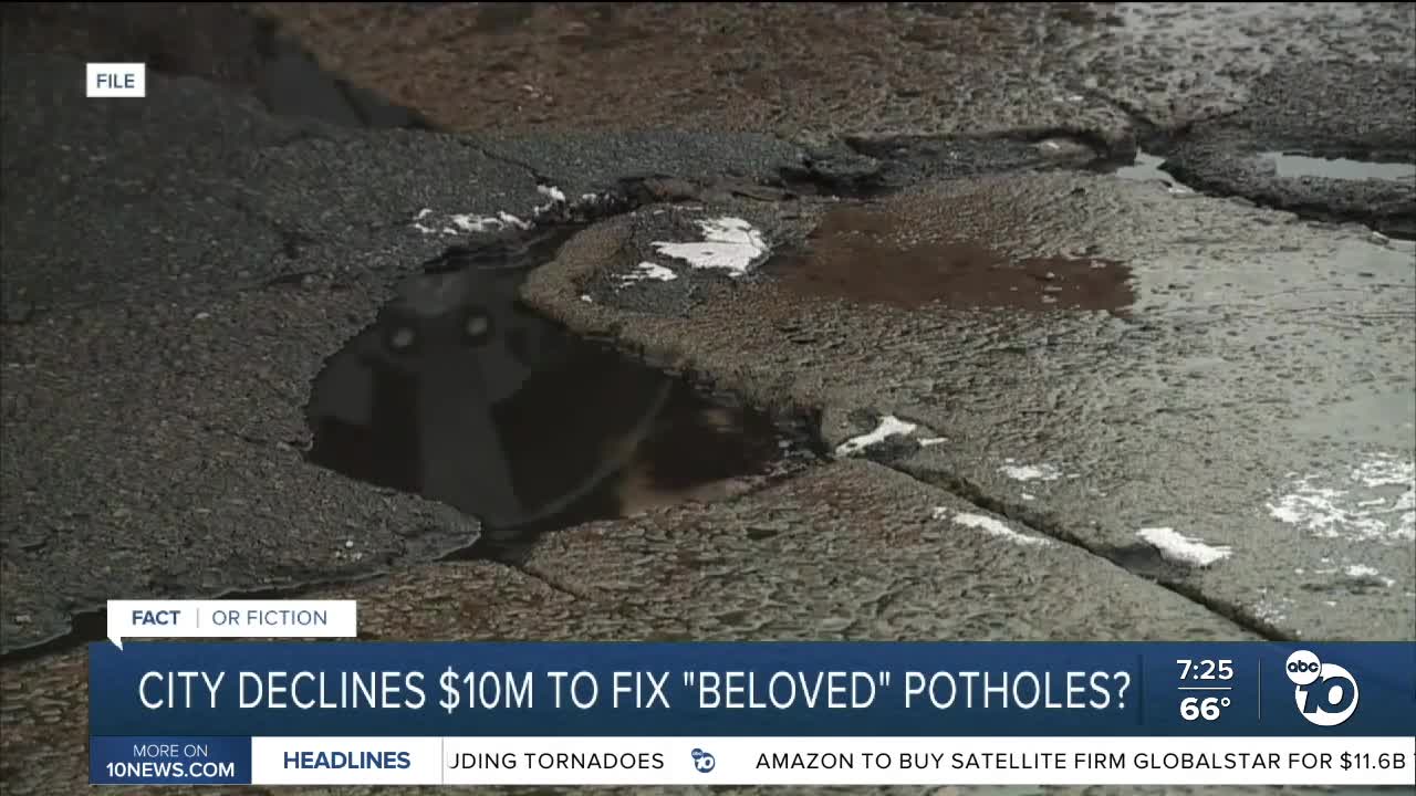 (KGTV) — A story that seems hard to believe claims the city of Ithica, New York turned down a $10 million grant to fill potholes because officials love them.