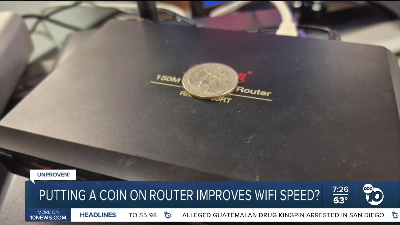 (KGTV) — A viral hack being spread online claims placing a coin on top of your WiFi router can boost internet speed and stability.