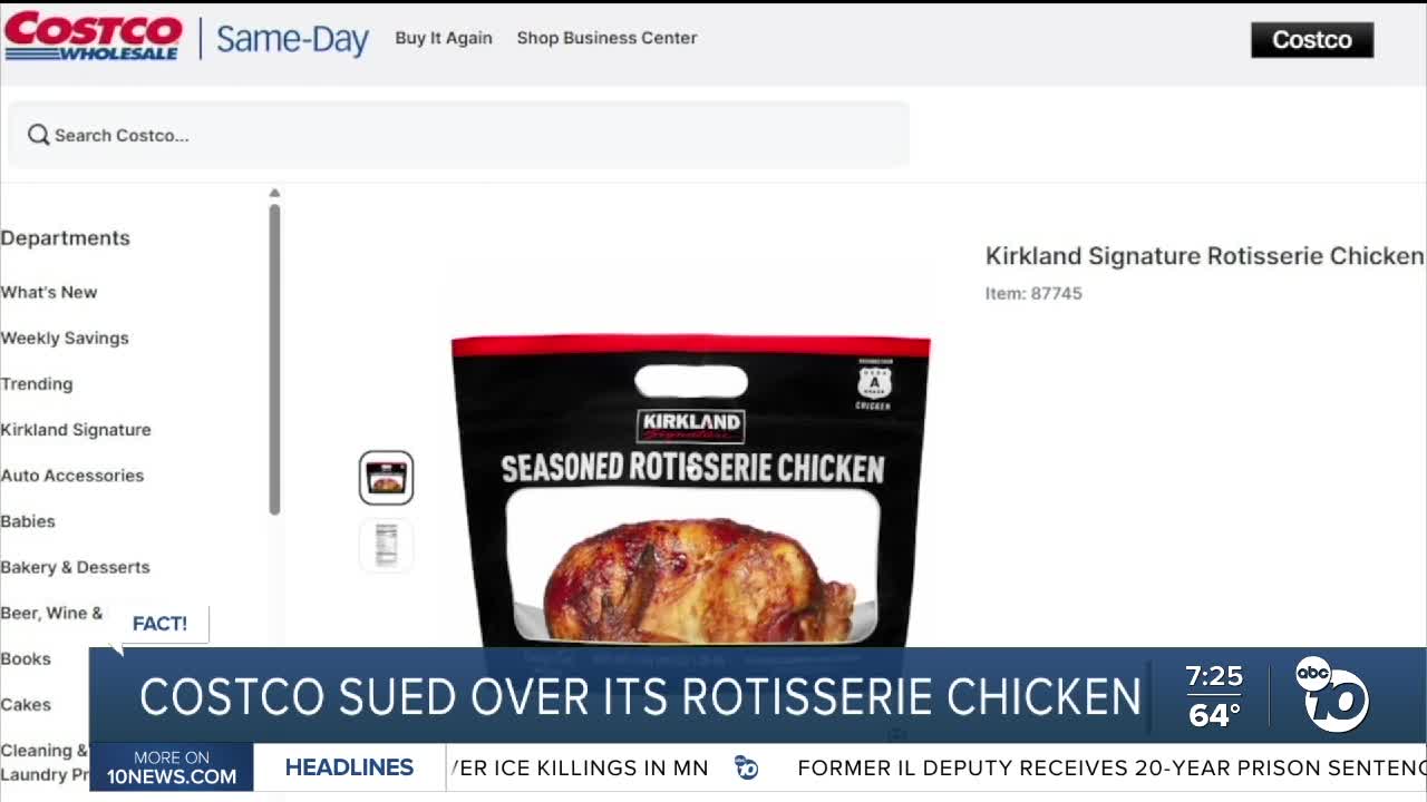 (KGTV) — A story you may have heard claims Costco is being sued over its hugely popular $4.99 rotisserie chicken.