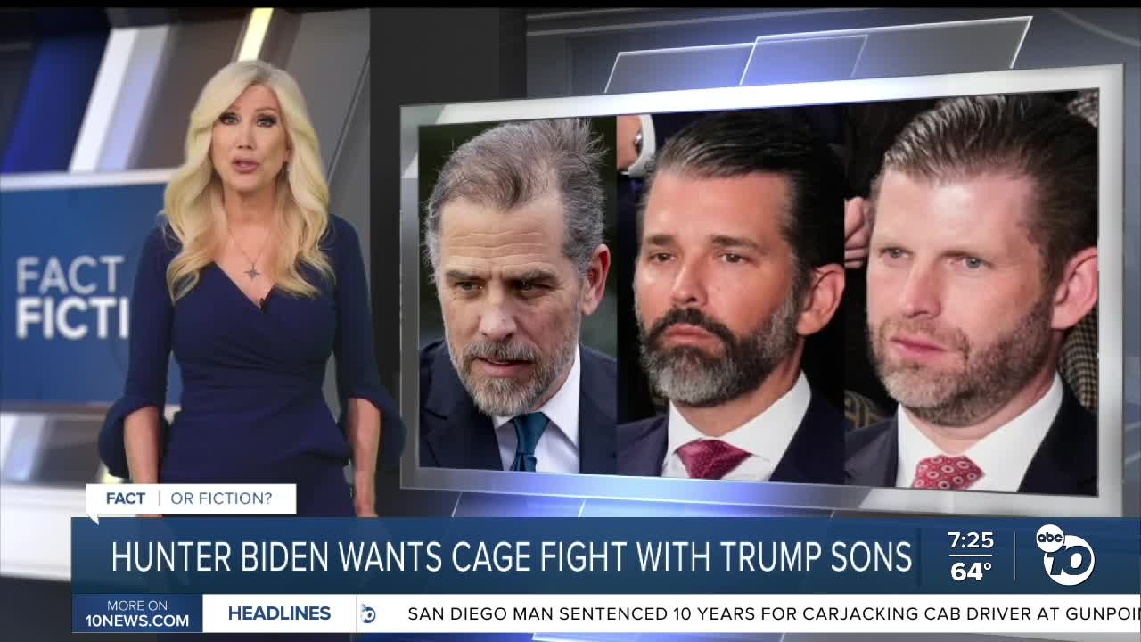 (KGTV) — A story you may have heard claims Hunter Biden, the son of former President Joe Biden, is challenging Donald Trump's sons, Donald Jr. and Eric, to a cage fight.
