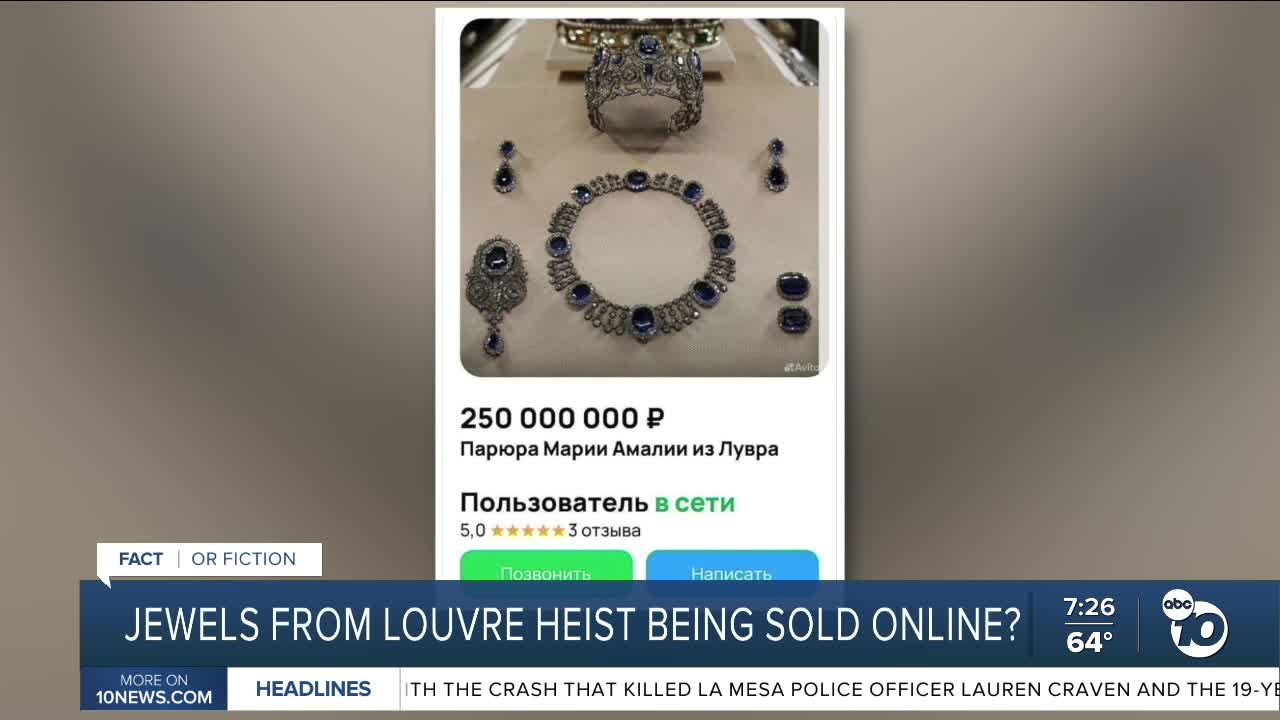 (KGTV) — A picture being sent around claims to show some of the jewelry stolen from the Louvre being sold on a Russian classified ads site.