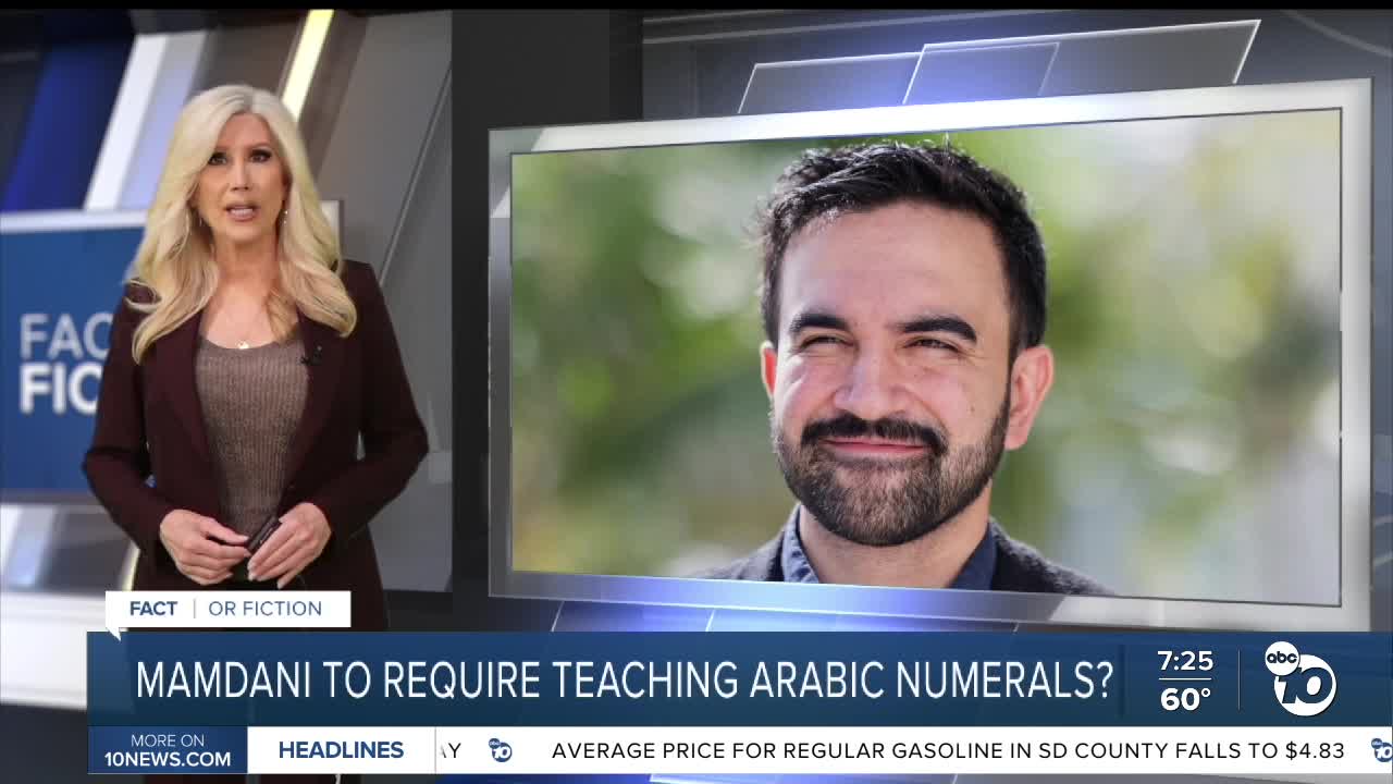 (KGTV) — Posts on social media are warning that New York Mayor-elect Zohran Mamdani is expected to introduce rules after he takes office requiring all public schools to learn "Arabic numerals."