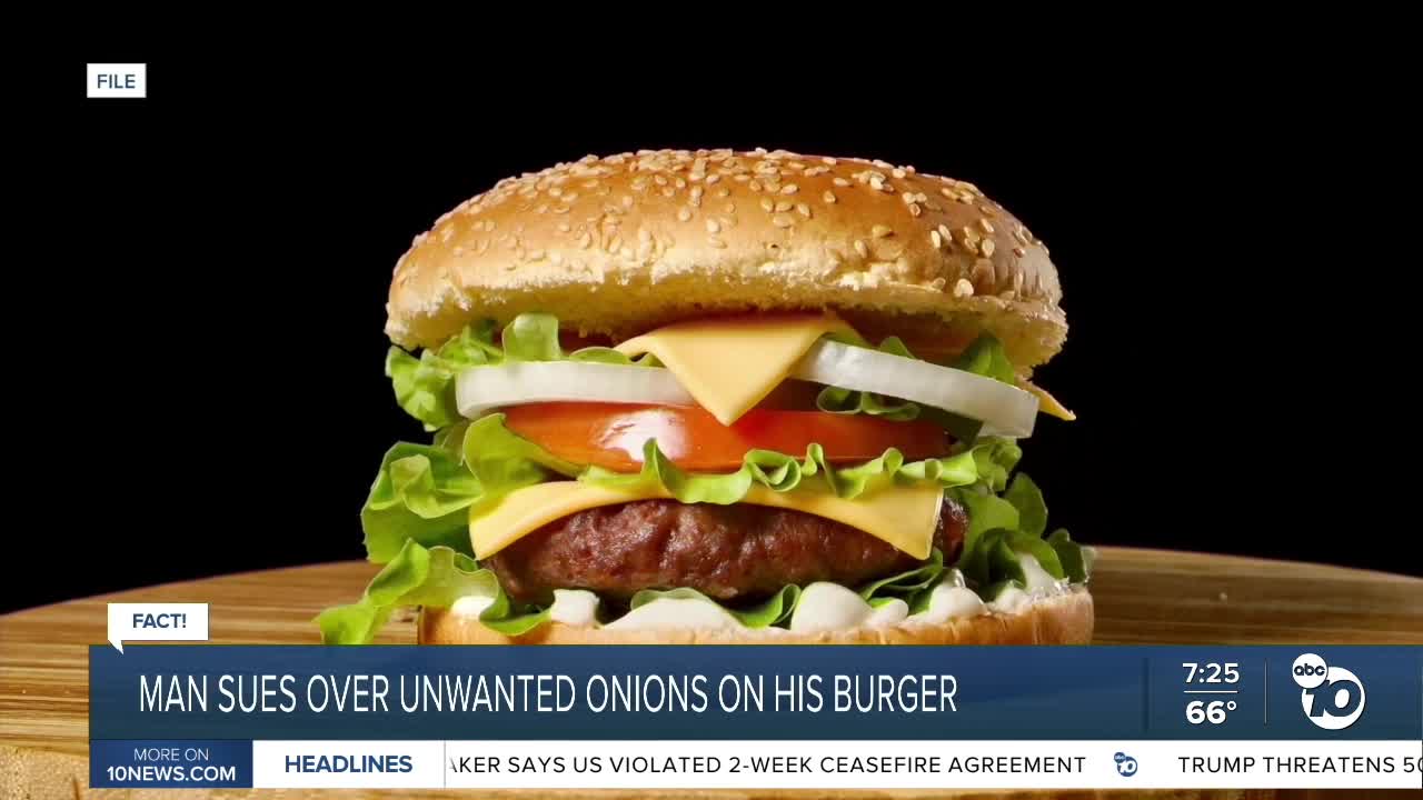 (KGTV) — A story you may have seen claims a man is suing a fast food chain for leaving onions on his burger, despite his request to leave them off.
