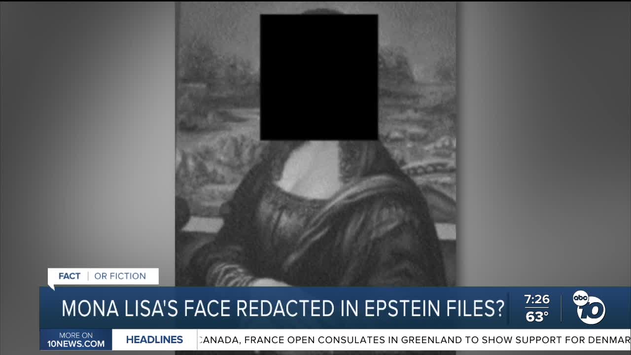 (KGTV) — A story getting a lot of buzz claims the Department of Justice redacted the face of the Mona Lisa in the Epstein files.