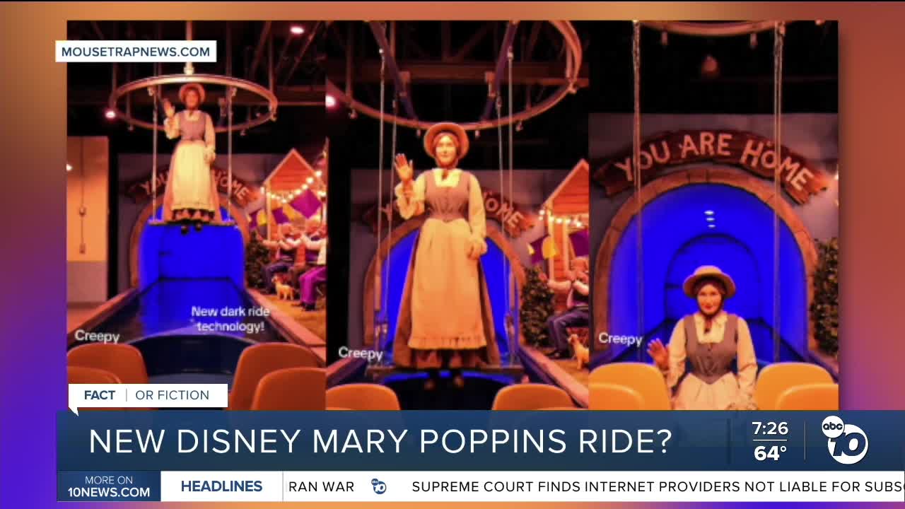 (KGTV) — An article going around claims a new Mary Poppins ride is coming to Disney World and that it's the first ride in which an animatronic joins you for the ride.