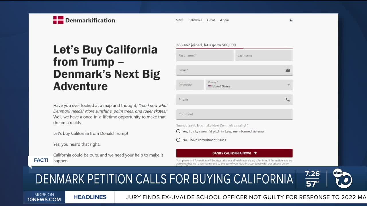 (KGTV) — A story you may have heard claims a petition is circulating in Denmark calling on the country to buy California.