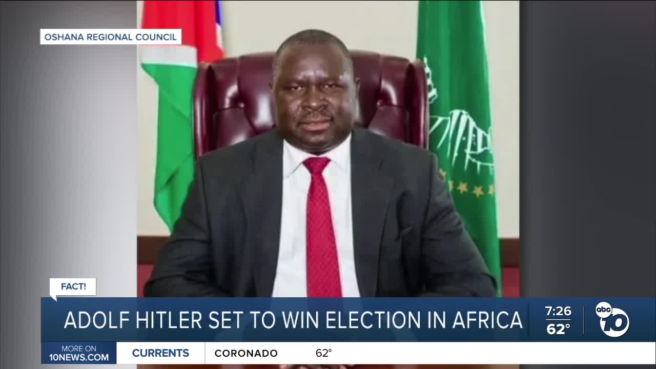 (KGTV) — A story you may have seen claims a politician named Adolf Hitler is set to win an election in his home country in southwestern Africa.