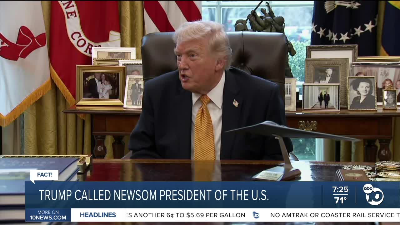 (KGTV) — A story getting some buzz this week claims President Trump called California Governor Gavin Newsom the President of the United States.