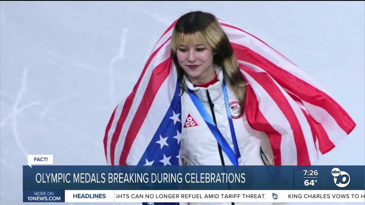 (KGTV) — A story you may have seen claims some of the medals being won at the Winter Olympics are breaking during the victory celebrations.
