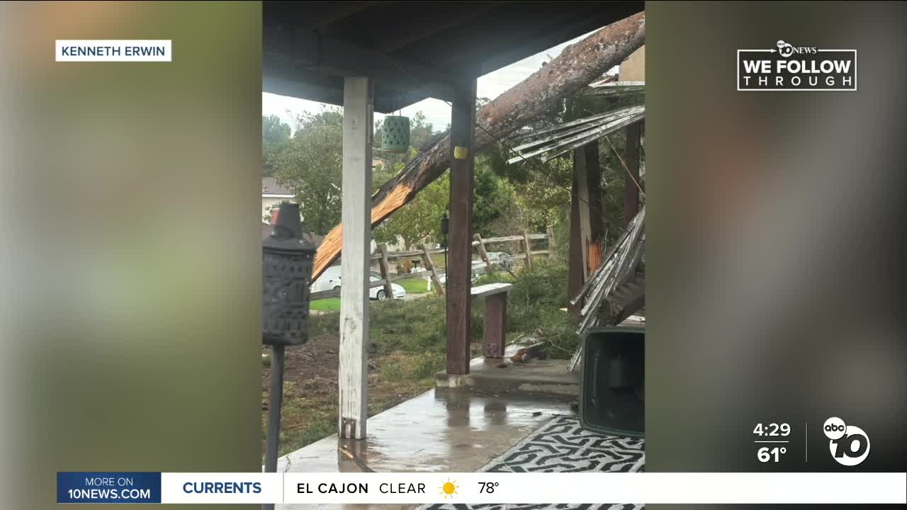 SPRING VALLEY, Calif. (KGTV) — Three weeks after strong winds sent two large tree branches crashing into a Spring Valley home, nearly injuring a couple inside, ABC 10News viewers have stepped up to help the displaced family.