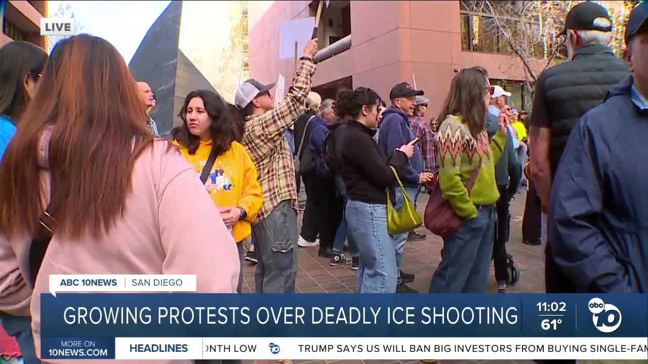 "Protesters in San Diego are calling for an end to violent, out-of- control immigration operations with ICE raiding communities and tearing families apart," a statement from SEIU Local 221 said. The local represents more than 12,000 workers in San Diego and Imperial counties.