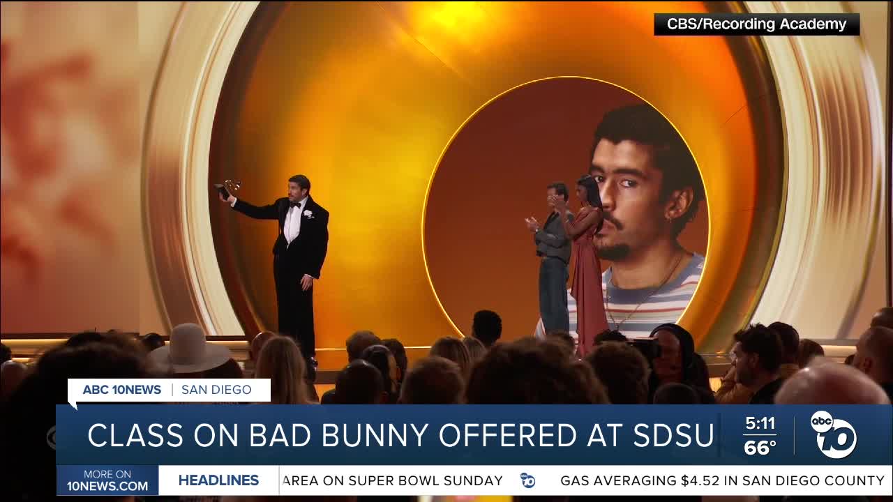 SAN DIEGO (KGTV) — Bad Bunny, the six-time Grammy Award winner and upcoming Super Bowl 60 halftime performer, has become the subject of an academic course at San Diego State University that examines his cultural influence on a global scale.