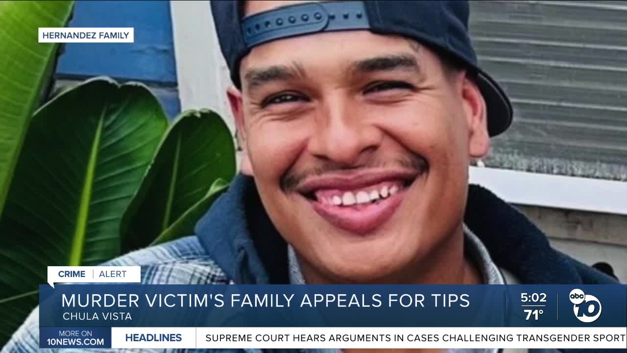 CHULA VISTA, Calif. (KGTV) - The family of a Chula Vista man who died after being shot outside a bar while celebrating his 31st birthday is pleading for the public's help in finding his killer.