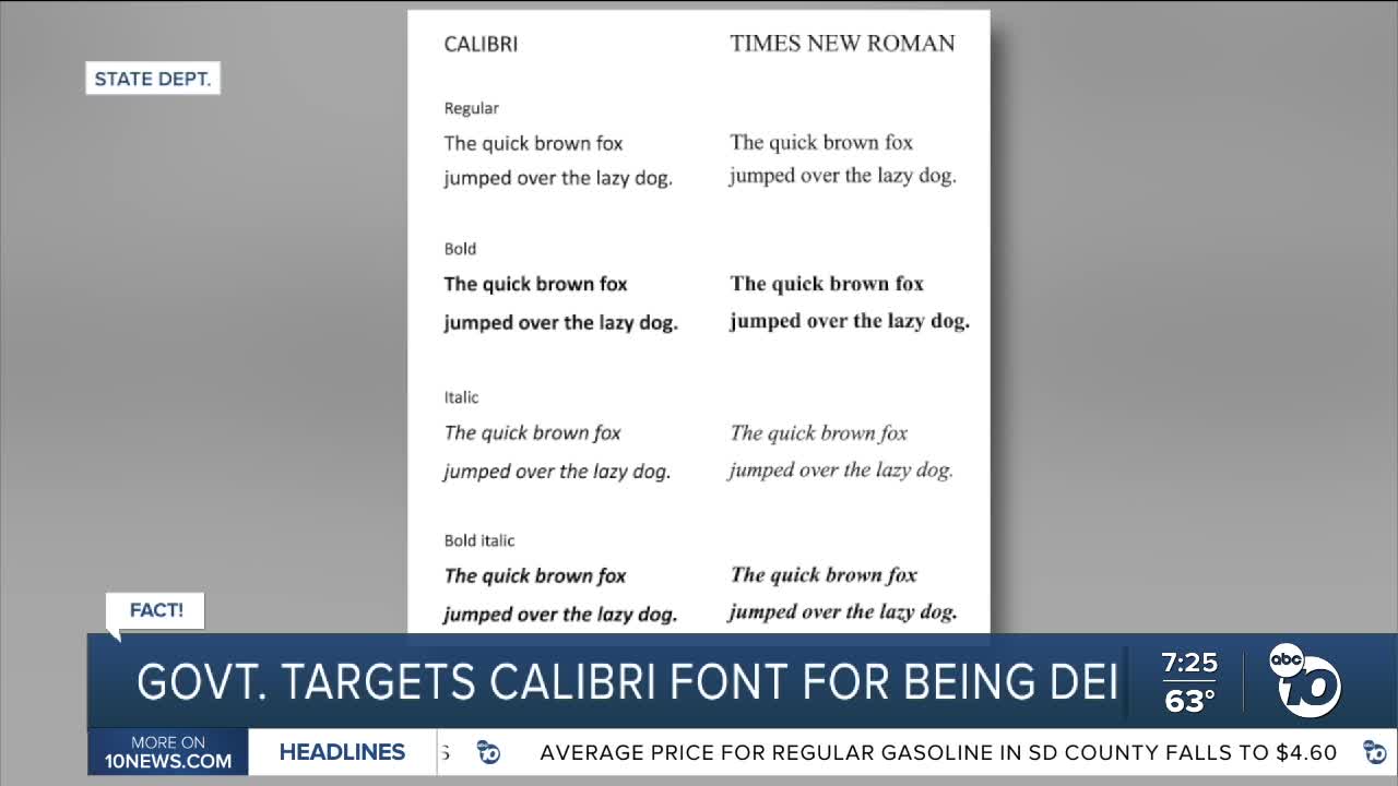 (KGTV) — A story that caught our eye claims the Trump Administration is ordering a change in the font used in diplomatic correspondence in the name of fighting DEI.