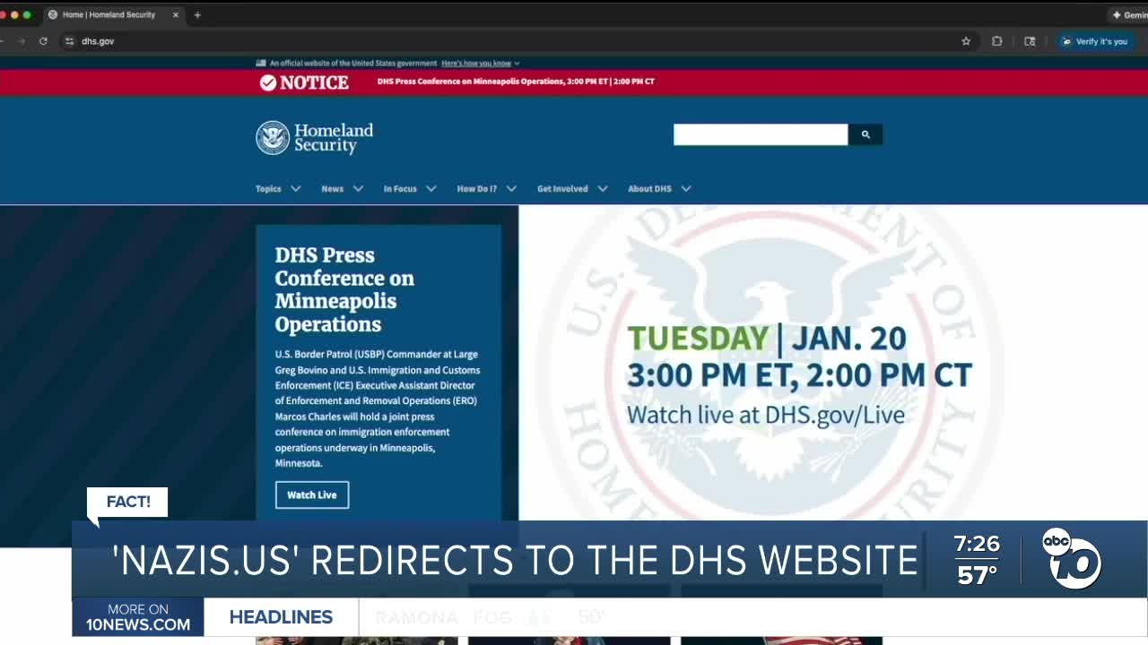 (KGTV) — A story you may have heard claims typing ‘nazis.us’ into a web browser will take you to the Department of Homeland Security's website.