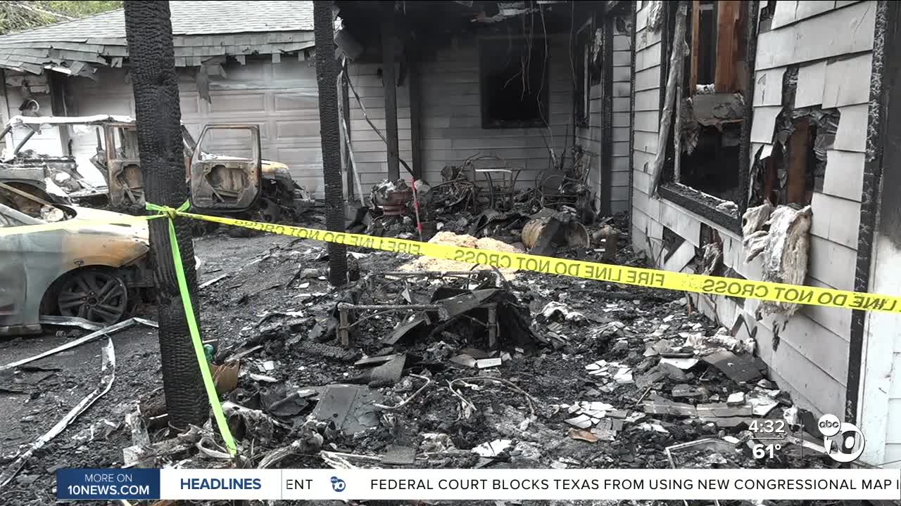 FALLBROOK, Calif. (KGTV) — A family of six escaped a fast-moving house fire Saturday morning after a portable solar generator exploded outside their Fallbrook home, igniting flames that quickly engulfed the residence.