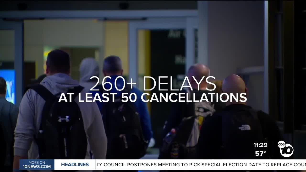 By Saturday night, more than 260 delays and at least 50 cancellations had been reported at San Diego International in just 48 hours.