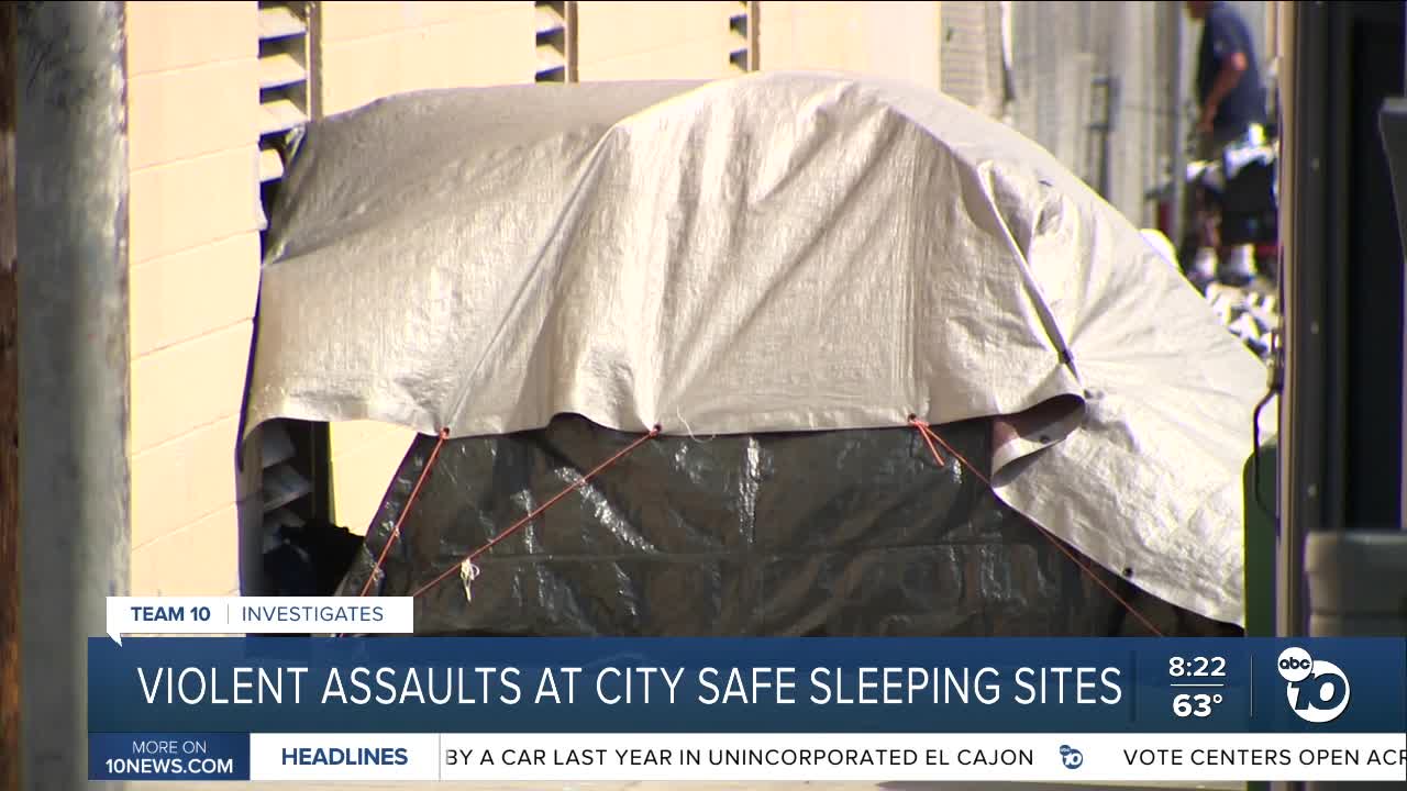 SAN DIEGO, Calif. — Some homeless people who lived at the City of San Diego’s safe sleeping sites are speaking out about violent assaults at the taxpayer-funded camp sites.