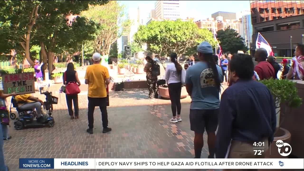 SAN DIEGO (CNS) - Dozens of demonstrators from a coalition of several local advocacy groups gathered outside the Immigration and Customs Enforcement's downtown office Thursday for a weekly "ICE Out of San Diego" protest.