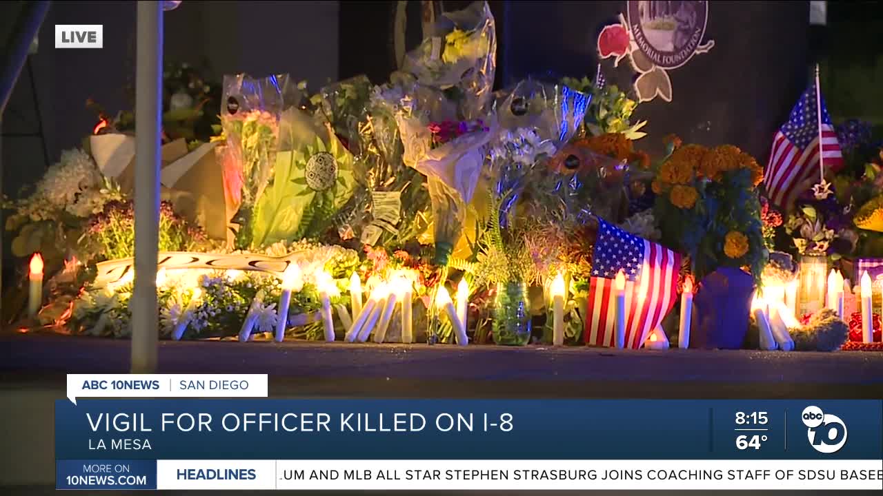 SAN DIEGO (CNS) - A candlelight vigil will be held Monday evening in honor of a young La Mesa Police Department officer who was fatally struck by a car a week ago as she was assisting a motorist at the scene of a College-area freeway accident.