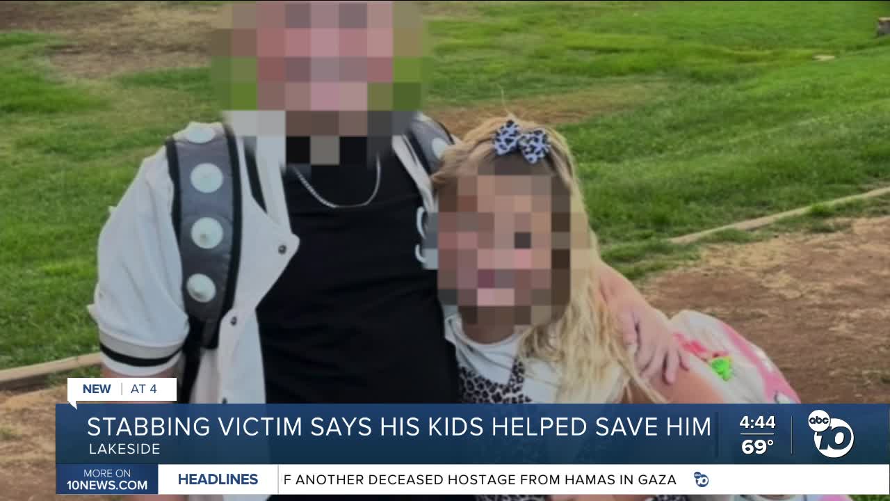 LAKESIDE, Calif. (KGTV) - A Lakeside father is calling his two young children his heroes after they helped save his life during an apparent road rage attack that left him with multiple stab wounds.