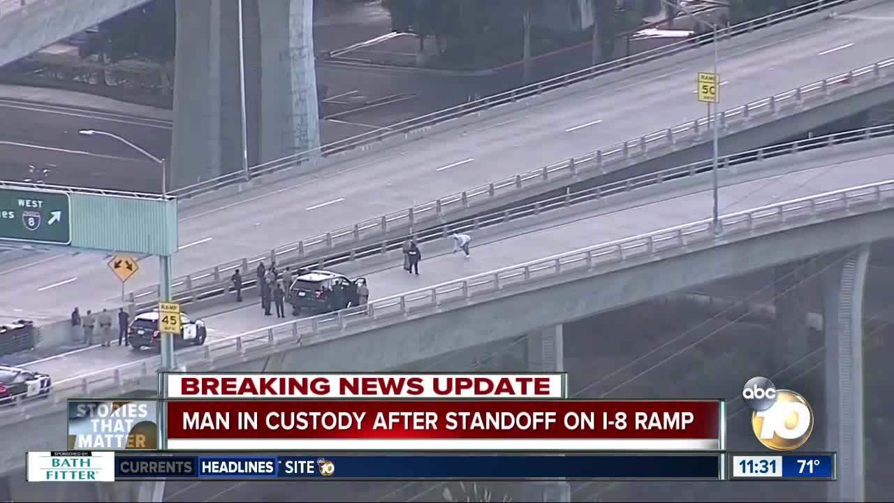 A standoff on ensued as the driver slowly made his way down the ramp towards westbound I-8 before stopping and waiting by the railing.