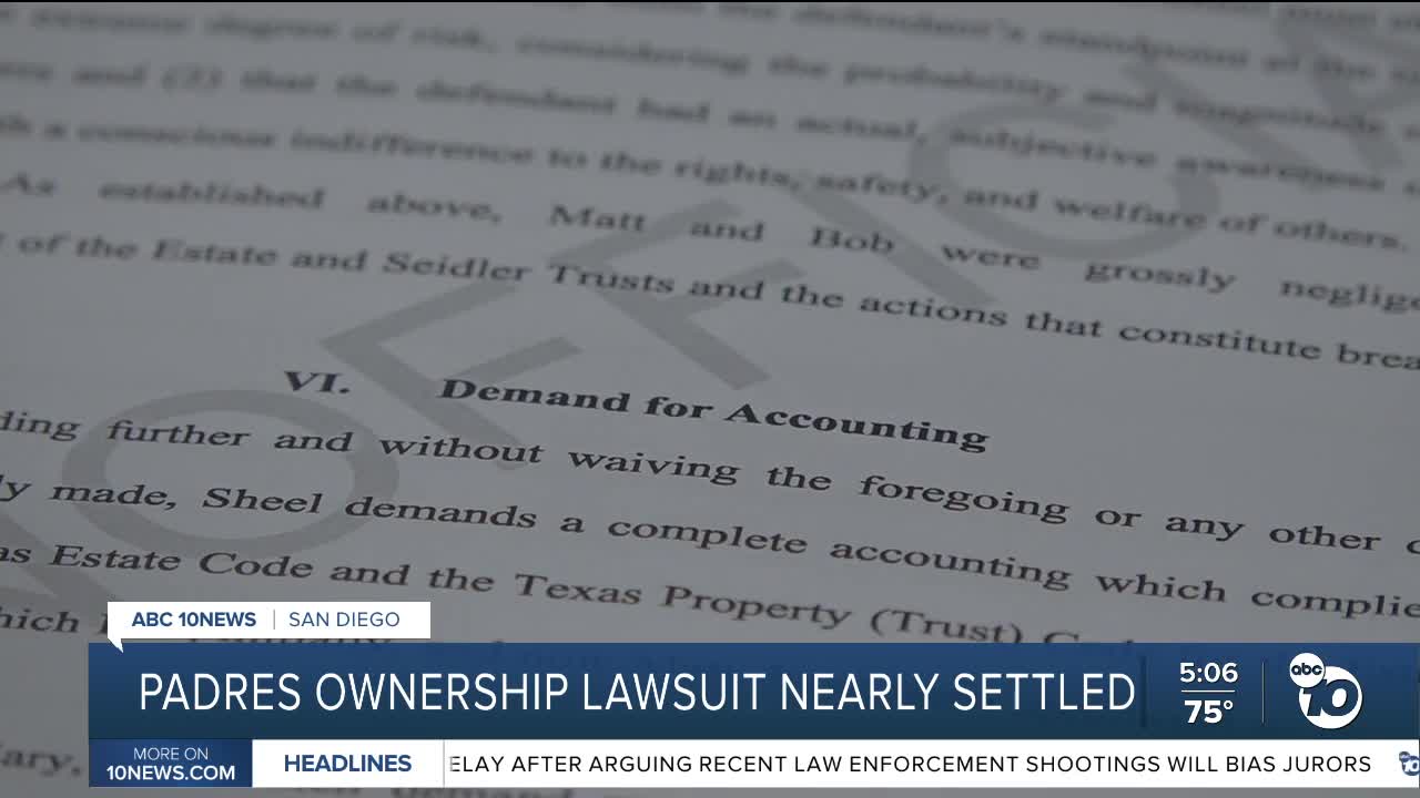SAN DIEGO (KGTV) – Lawsuit over control of the San Diego Padres appears to be mostly settled, according to Texas court documents.