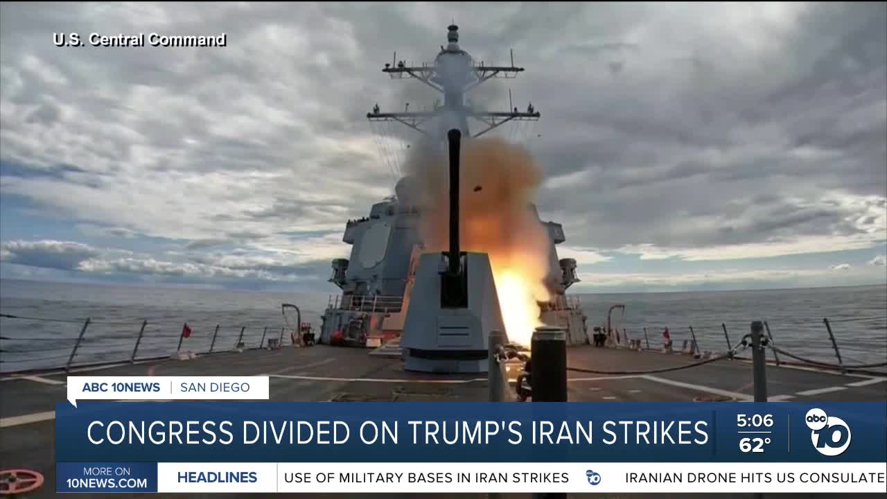 SAN DIEGO (KGTV) — San Diego's congressional delegation is split along party lines over whether President Trump needed to consult Congress before ordering military action against Iran.