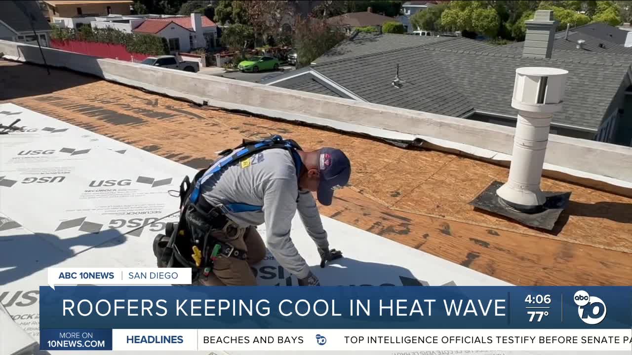 ABC 10News met with Logsdon and his crew at a job site in La Jolla on some of the steps they take to stay cool while roofing, like pop-up tents.