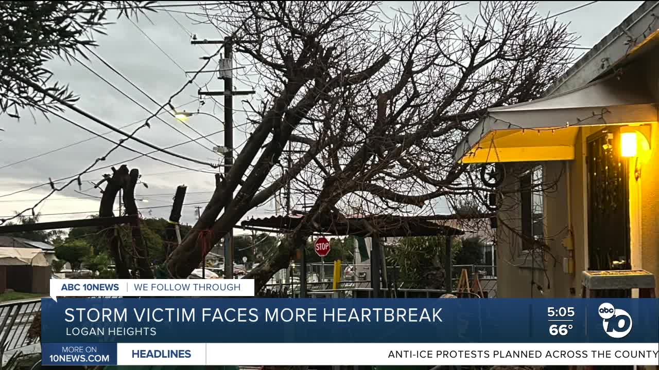 SAN DIEGO (KGTV) — A Logan Heights woman is facing another tragedy after a fire damaged her home more than a week after Christmas Eve winds brought down trees on her property.