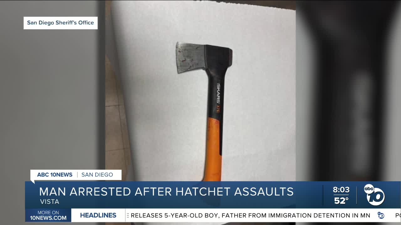 VISTA (CNS) - A man was in jail today for allegedly committing two violent assaults in Vista, including one involving a hatchet, authorities said.