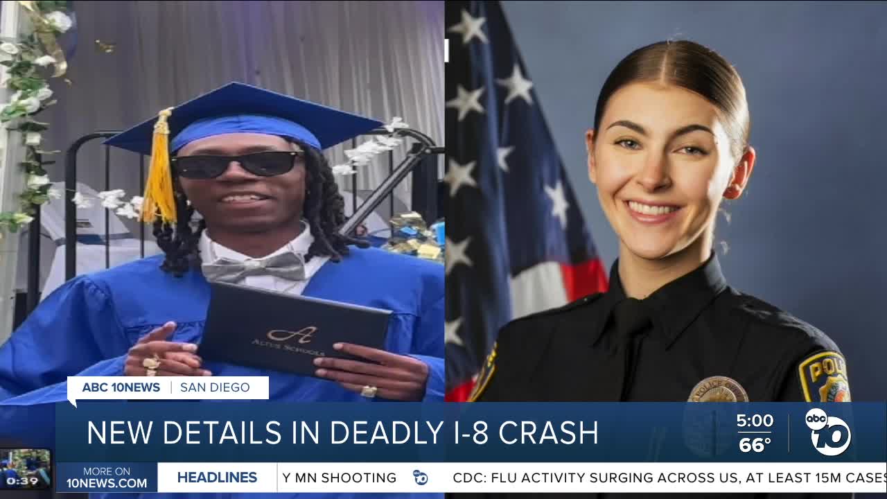 SAN DIEGO (KGTV) — A medical examiner's report obtained by ABC 10News is shedding light on the tragic October crash that killed La Mesa Police Officer Lauren Craven and 19-year-old Deveonte Morris on Interstate 8.