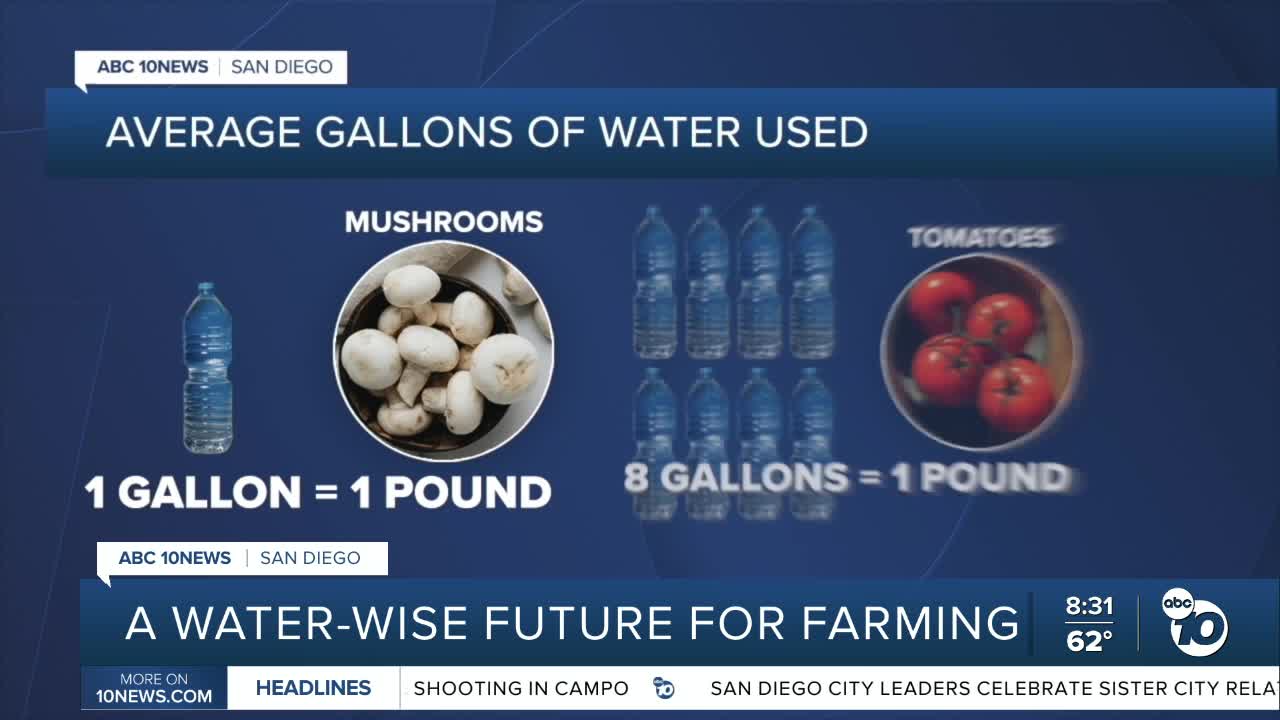 But in San Diego county, one farm is growing a crop that uses way fewer resources in the process. That crop being mushrooms.