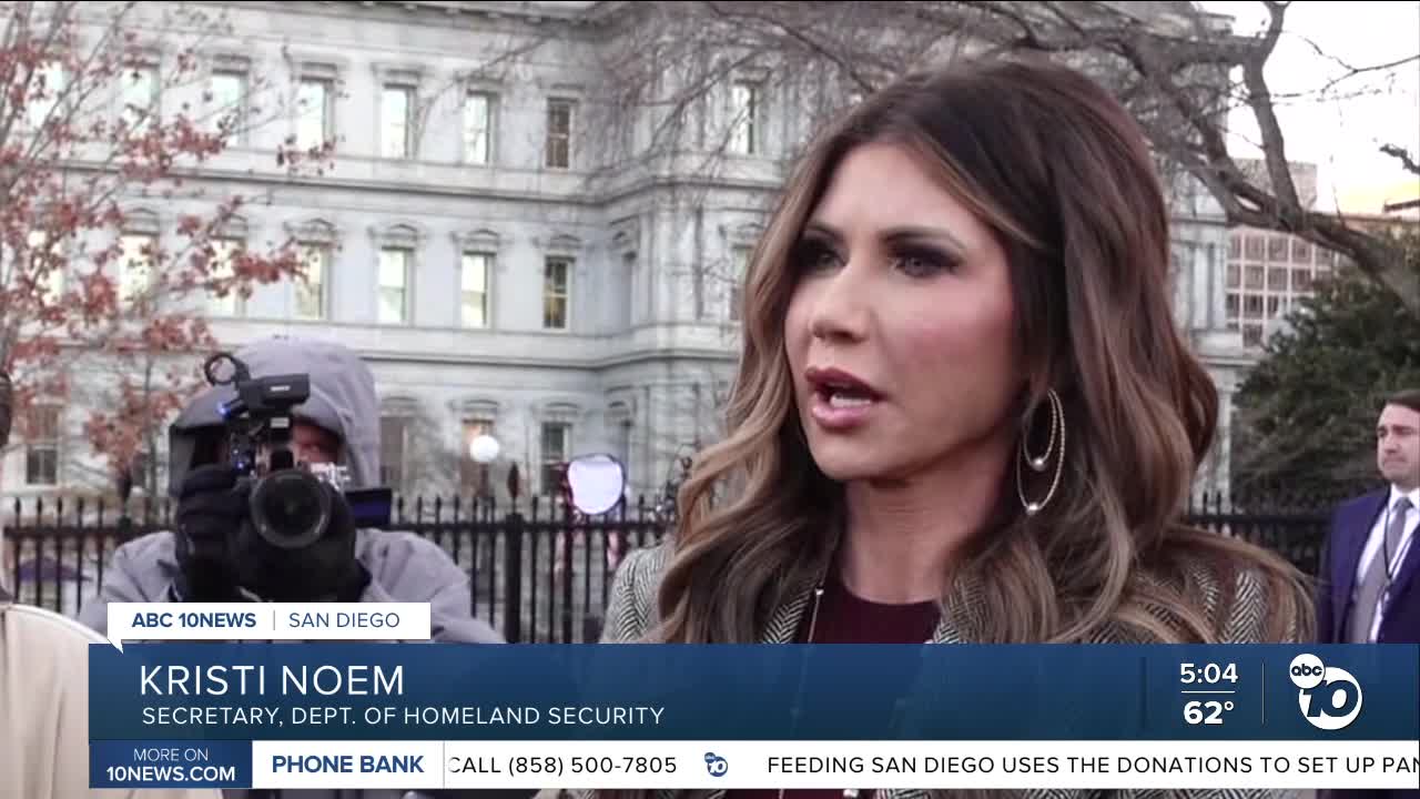 SAN DIEGO (KGTV) — Secretary of Homeland Security Kristi Noem is recommending a massive travel ban following the recent attack near the White House against two National Guard officers.