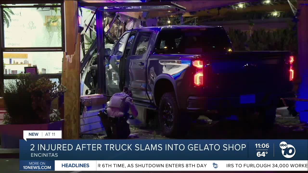 ENCINITAS, Calif. (KGTV) — A child was taken to the hospital after a truck crashed into an Encinitas gelato shop Wednesday night.