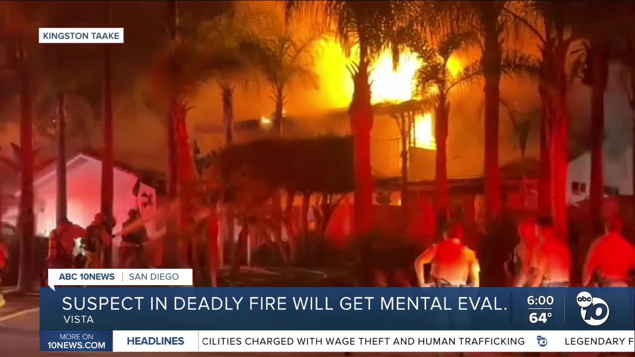 VISTA, Calif. (KGTV) — A 33-year-old man charged with murder and arson in a deadly San Marcos house fire over the weekend will undergo a competency evaluation before his criminal case moves forward.