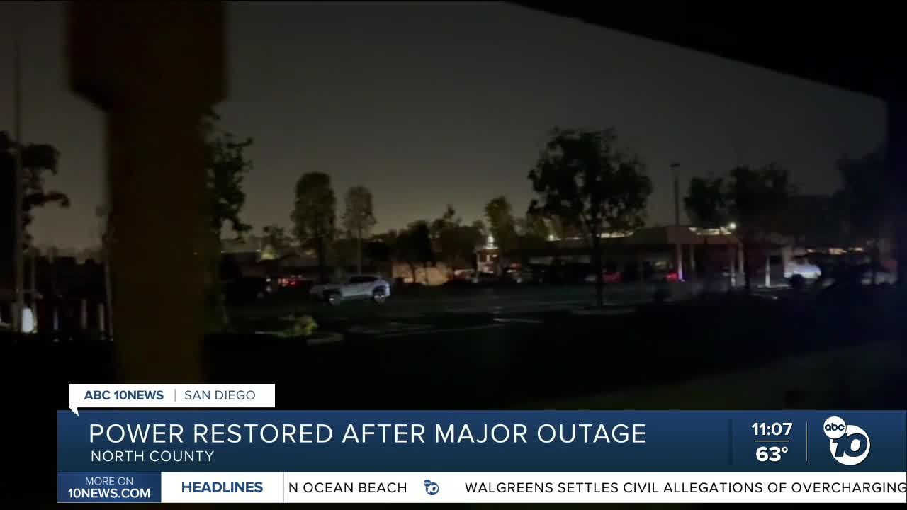 (KGTV) — A power outage affecting tens of thousands of residents swept through North County Thursday night, according to San Diego Gas and Electric.