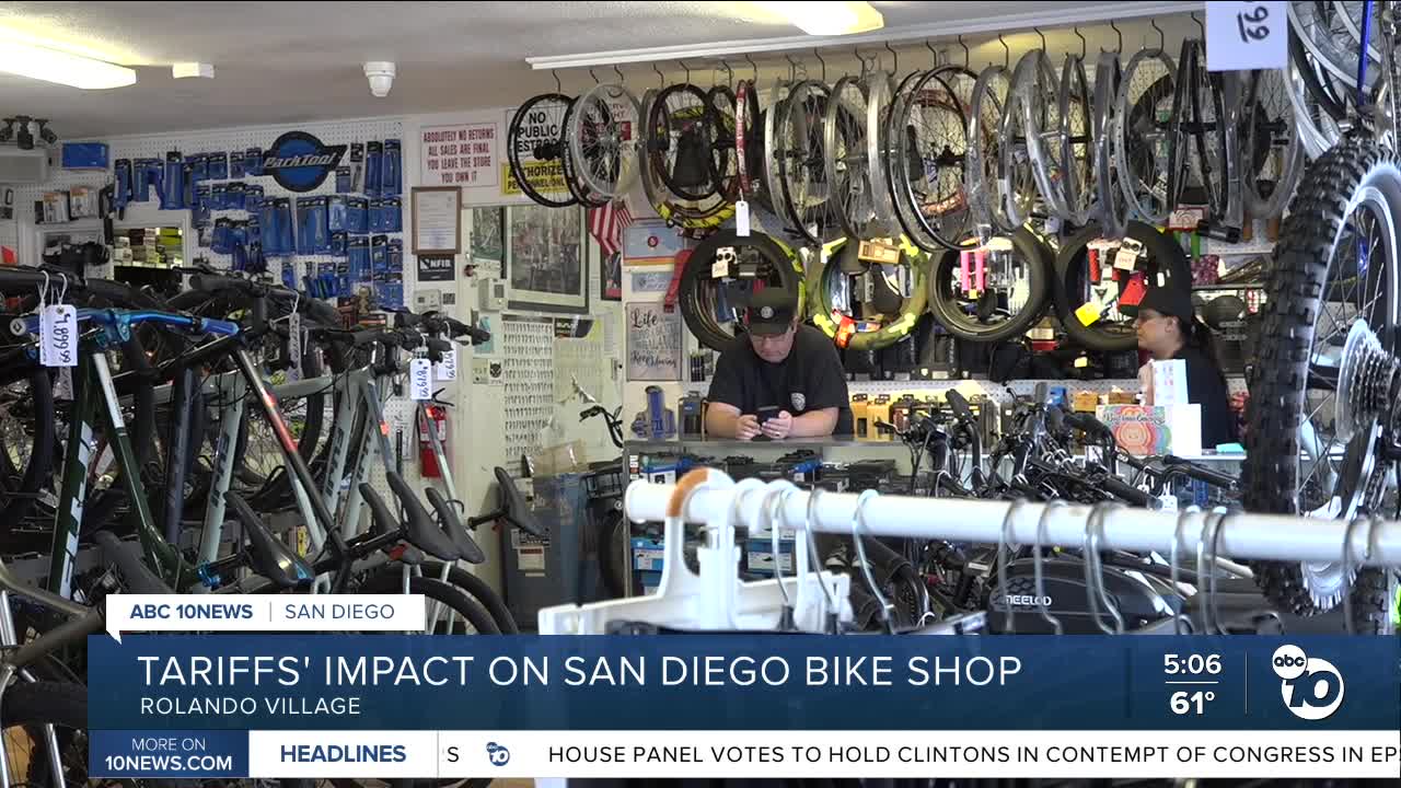 SAN DIEGO (KGTV) — A local San Diego bike shop owner is feeling the pinch from President Donald Trump's tariff policies as the anniversary of when he announced his tariff plans approaches. The business has had to adapt in unexpected ways to stay afloat.