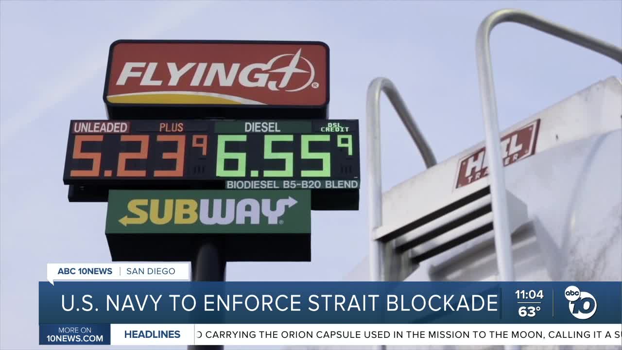 SAN DIEGO (KGTV) — President Trump announced the United States Navy will enforce a blockade along the Strait of Hormuz starting Monday, blocking maritime traffic in and out of Iranian ports.