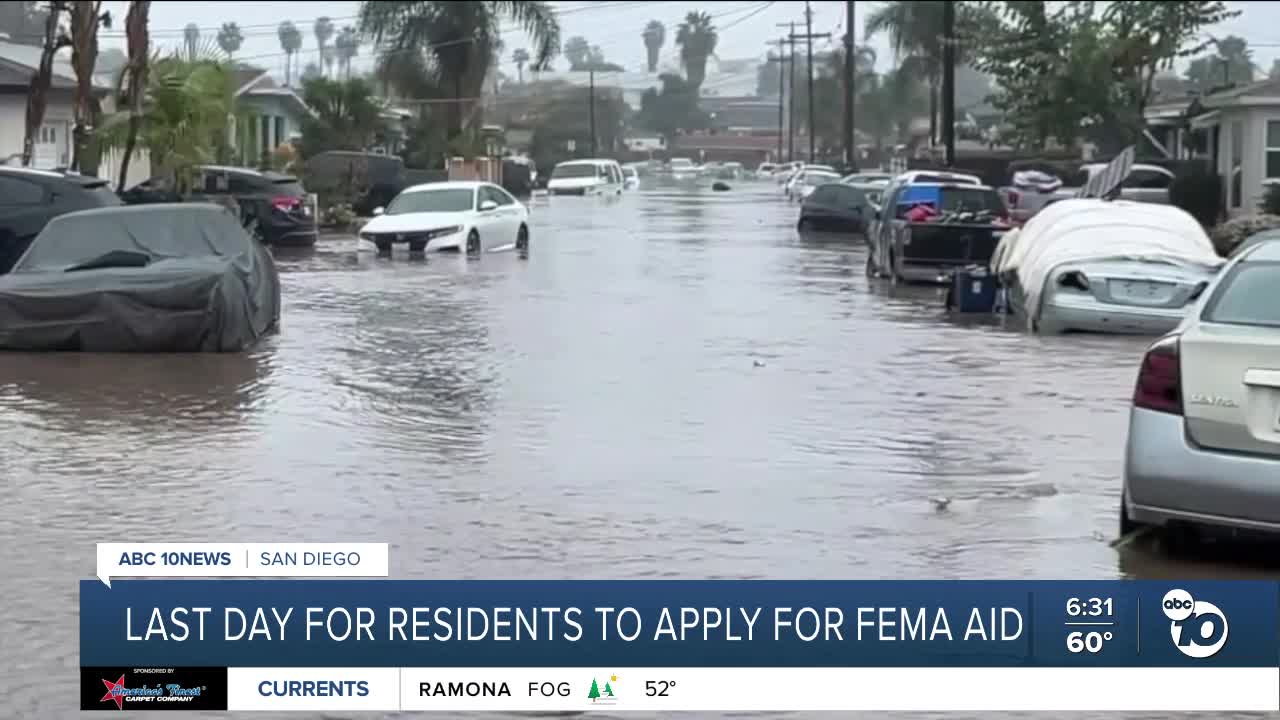 SAN DIEGO (KGTV) — San Diego victims of the Jan. 22 storm and flooding are running out of time to apply for assistance from the federal government.