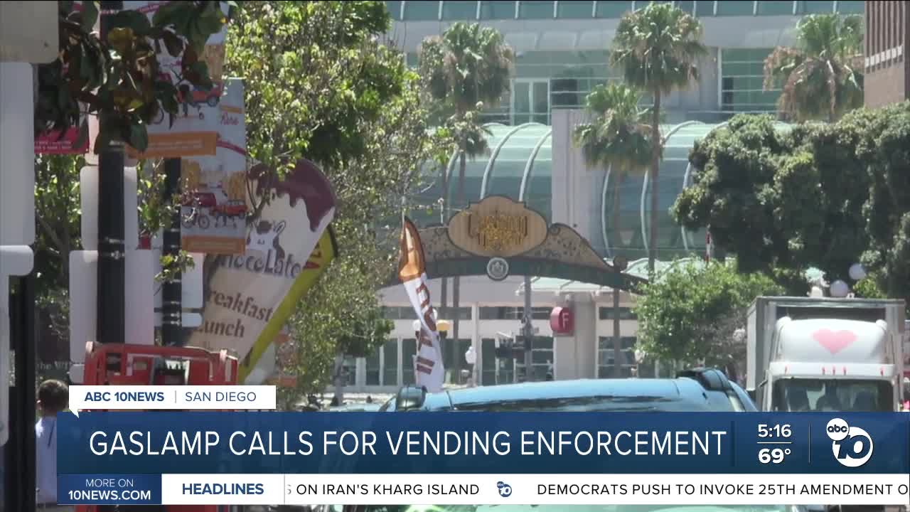 SAN DIEGO (KGTV) — "No vending zone" signs are scattered throughout San Diego's Gaslamp Quarter, but the Gaslamp Quarter Association says the rules have been ignored for years and is calling on the city to take action.