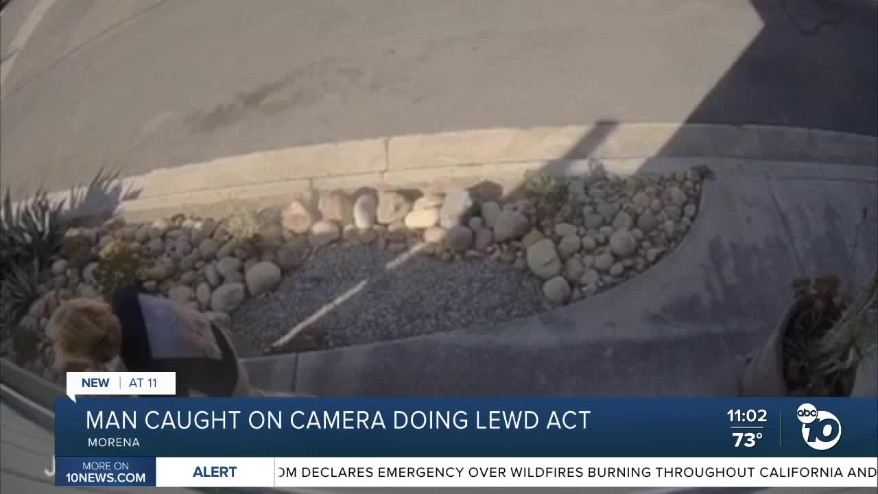 The incident happened on Aug. 12, shortly before 4:30 p.m. A home security camera caught the man stopping on the sidewalk and engaging in the lewd act as he crept near a woman that was gardening outside her home.