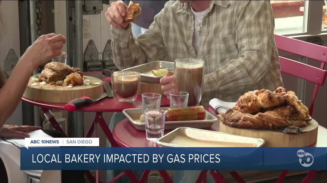 SAN DIEGO (KGTV) — The average cost of gas is nearing $6 due to global oil costs and regional supply constraints, and the pain at the pump is impacting local businesses like Izola Bakery in East Village.