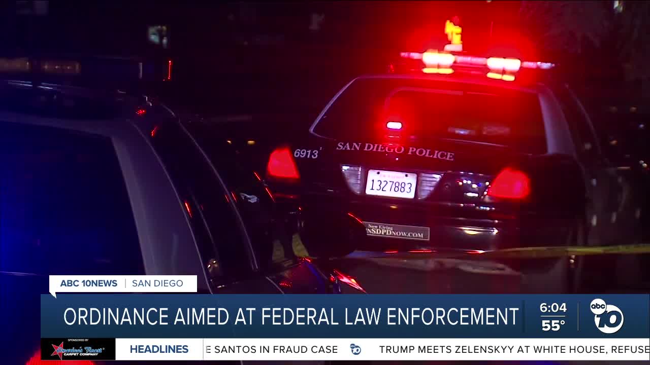 City officials emphasize that the ordinance does not stop police from pursuing serious crimes like drug trafficking or murder. However, it would require San Diego Police to report how they're working with federal officials and limits data that those federal agents can access.